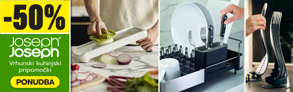 Razprodaja: JosephJoseph kuhinjski pripomočki Del ponudbe kuhinjskih pripomočkov in pripomočkov mednarodno priljubljene blagovne znamke JosephJoseph je v akciji do 20.3.2025