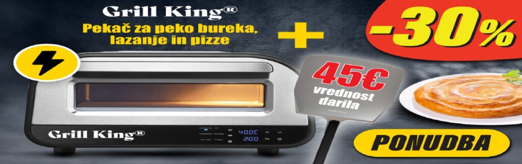Električna digitalna pečica Grill King je večnamenska naprava za pripravo pic, burekov, lazanj ter drugih specialitet in peciva, ki jih