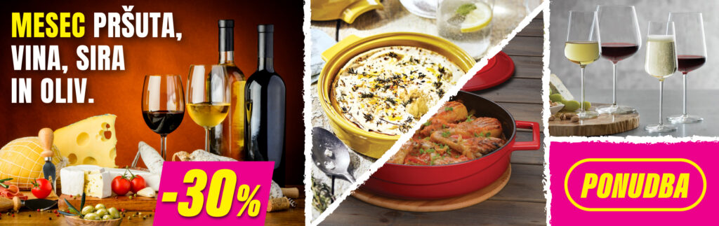 V junijski akciji, Mesecu pršuta, vina, sira in oliv, vas čaka prava poslastica – na stotine atraktivnih izdelkov po 30%