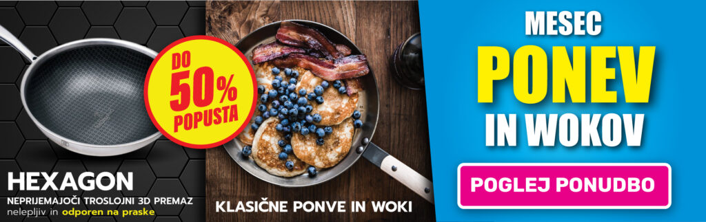 MESEC PONEV IN WOKOV: veliki popusti na vse ponve in woke V akciji Mesec ponev in wokov v mesecu juliju