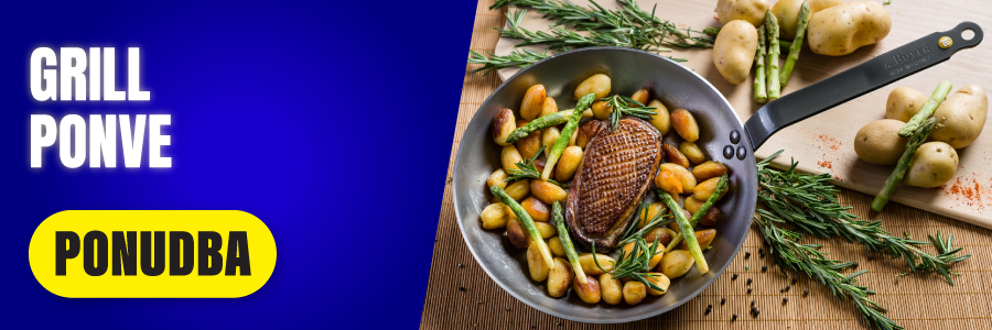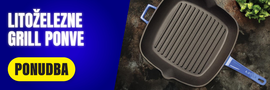 Nudimo veliko izbiro litoželeznih, železnih, inox, non-stick in bakrenih ponev in vokov priznanih blagovnih znamk Grill King, Korkmaz, de Buyer, Lava, Ibili, Ken Hom, Berlinger Haus.