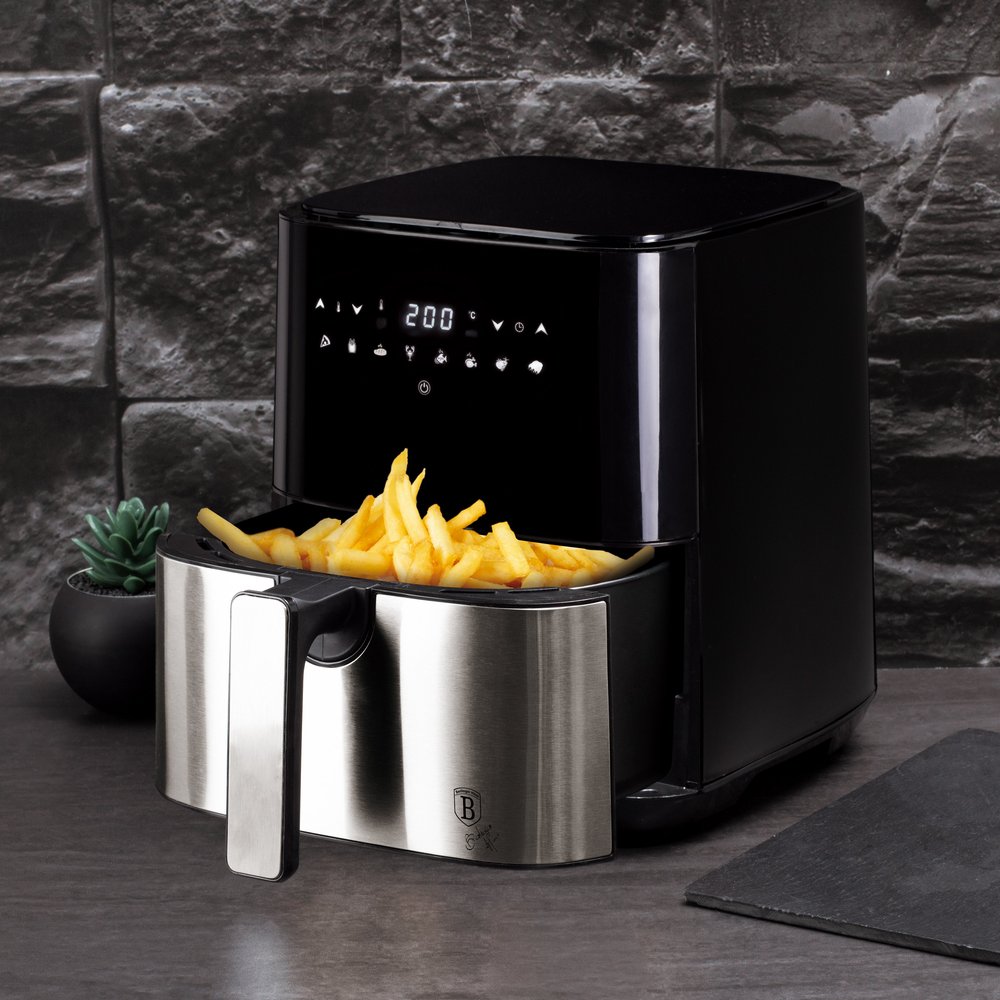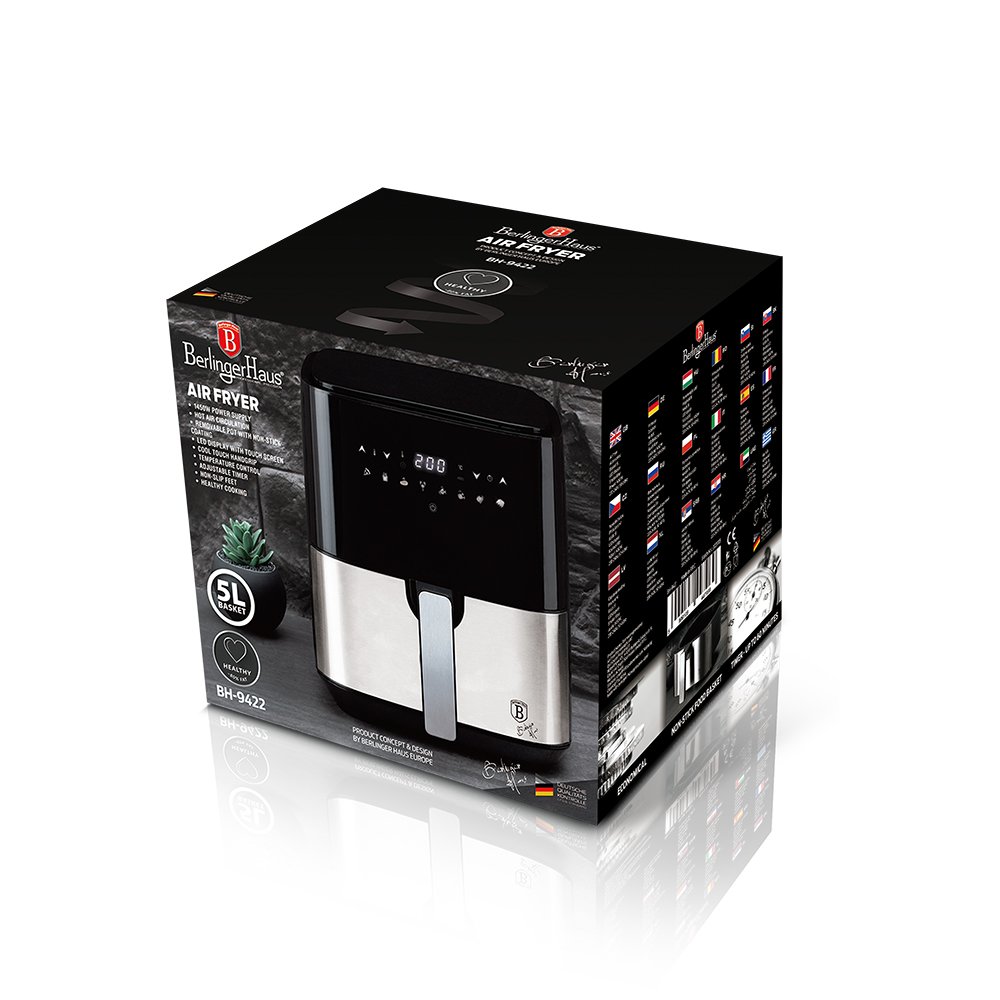 LED zaslon na dotik z zaščito pred pregrevanjem. Časovnik do 60 minut. Protizdrsne noge. Zdrav način kuhanja brez olja ali maščobe z do 80 % manj maščobe.