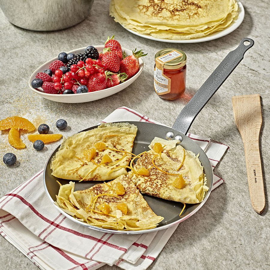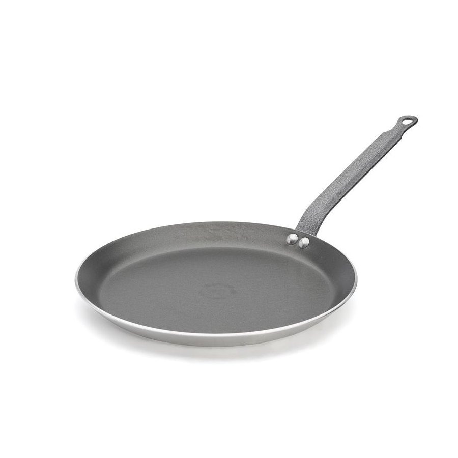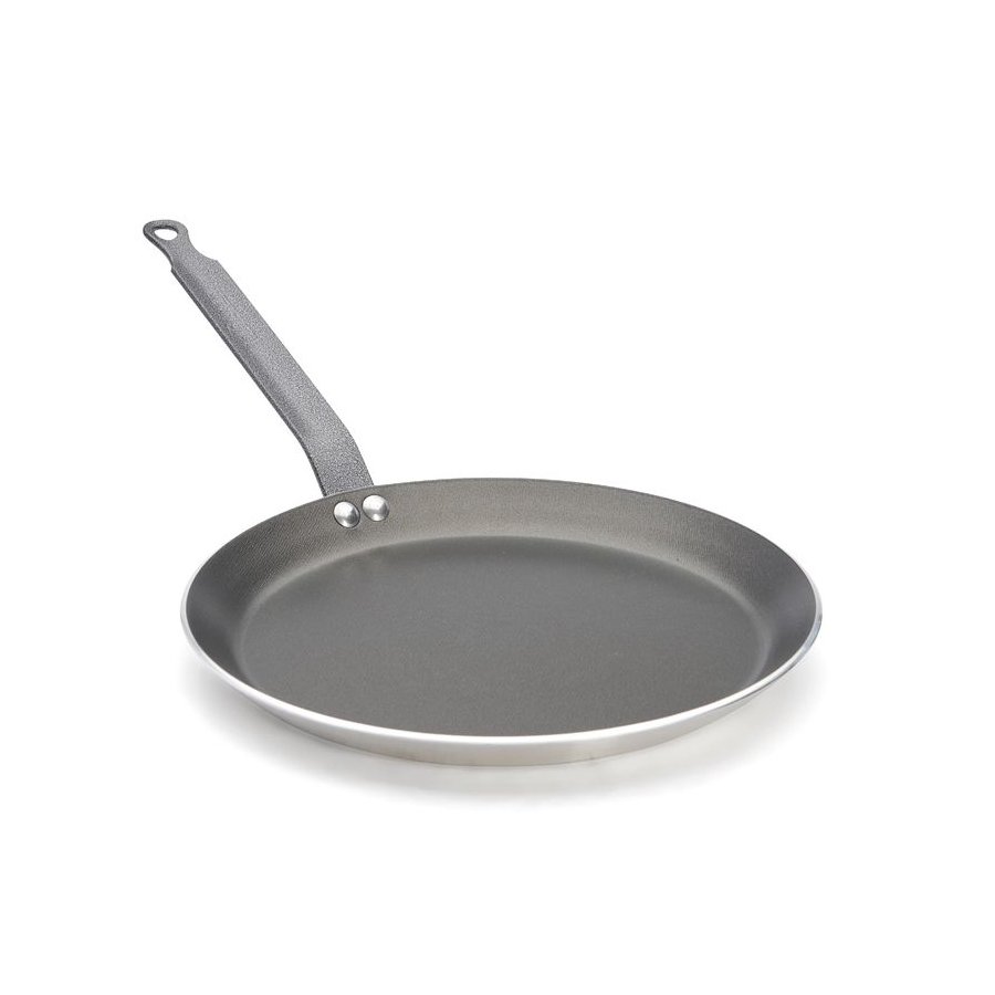 De Buyer, francoska kakovost! De Buyer ponev z nizkim robom odlična za palačinke. Zaradi premaza proti prijemanju je idealna za pripravo palačink z malo olja. Izdelana iz 4 mm debele plasti aluminija in nerjavečega jekla omogoča postopno doseganje visokih temperatur. Izogibajte se nenadnim temperaturnim spremembam. Ni primerna za uporabo kovinskih kuhinjskih pripomočkov in ni primerna za pranje v pomivalnemstroju. Primerno za vse površinske grelnike, vključno z indukcijo.