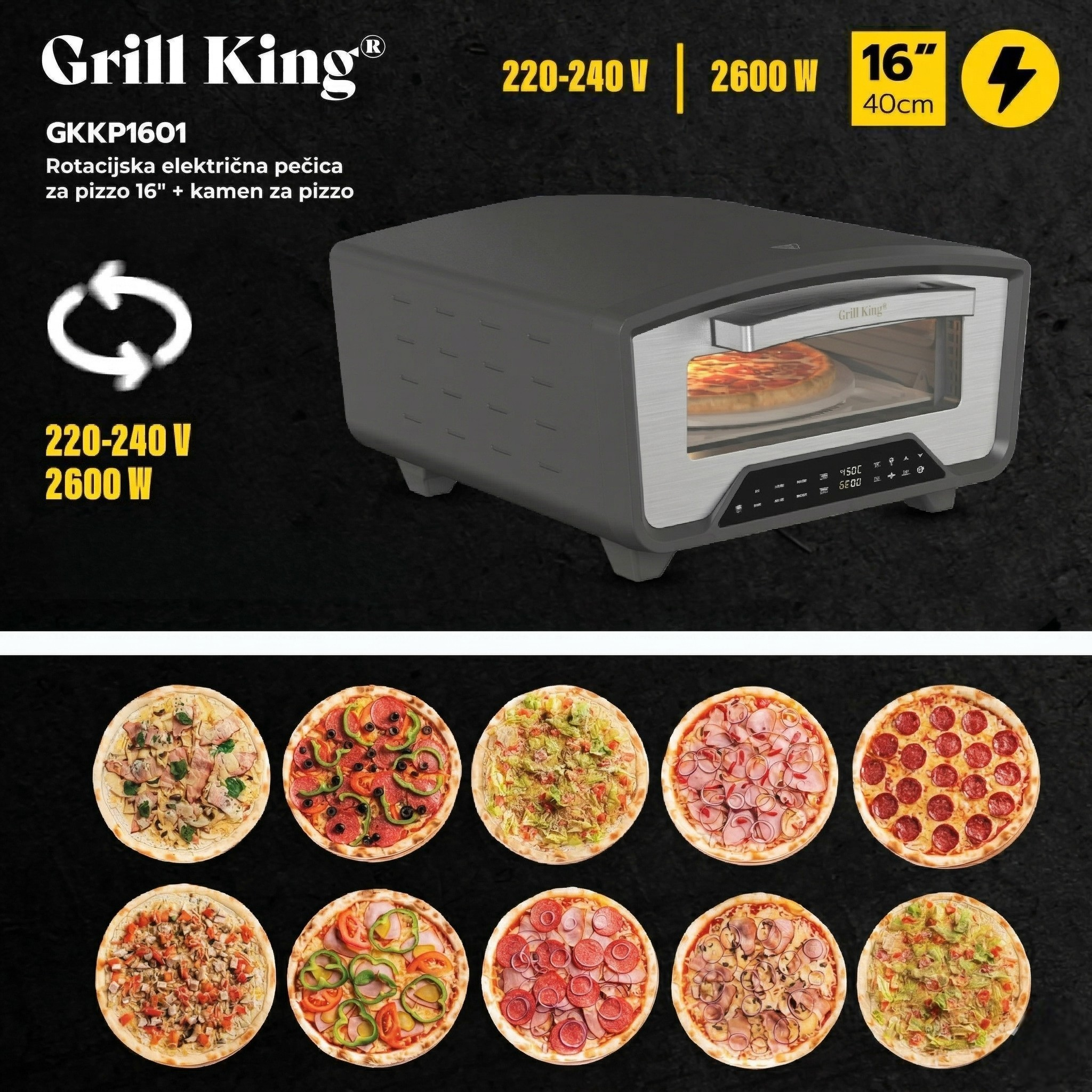 Z vgrajeno notranjo svetilko in digitalnim zaslonom boste imeli ves čas pregled nad dogajanjem, ne da bi odpirali vrata in izgubljali dragoceno temperaturo. Ne glede na to, ali ste začetnik ali mojster peke, Grill King poskrbi, da bo vsaka jed postala kulinarična mojstrovina.