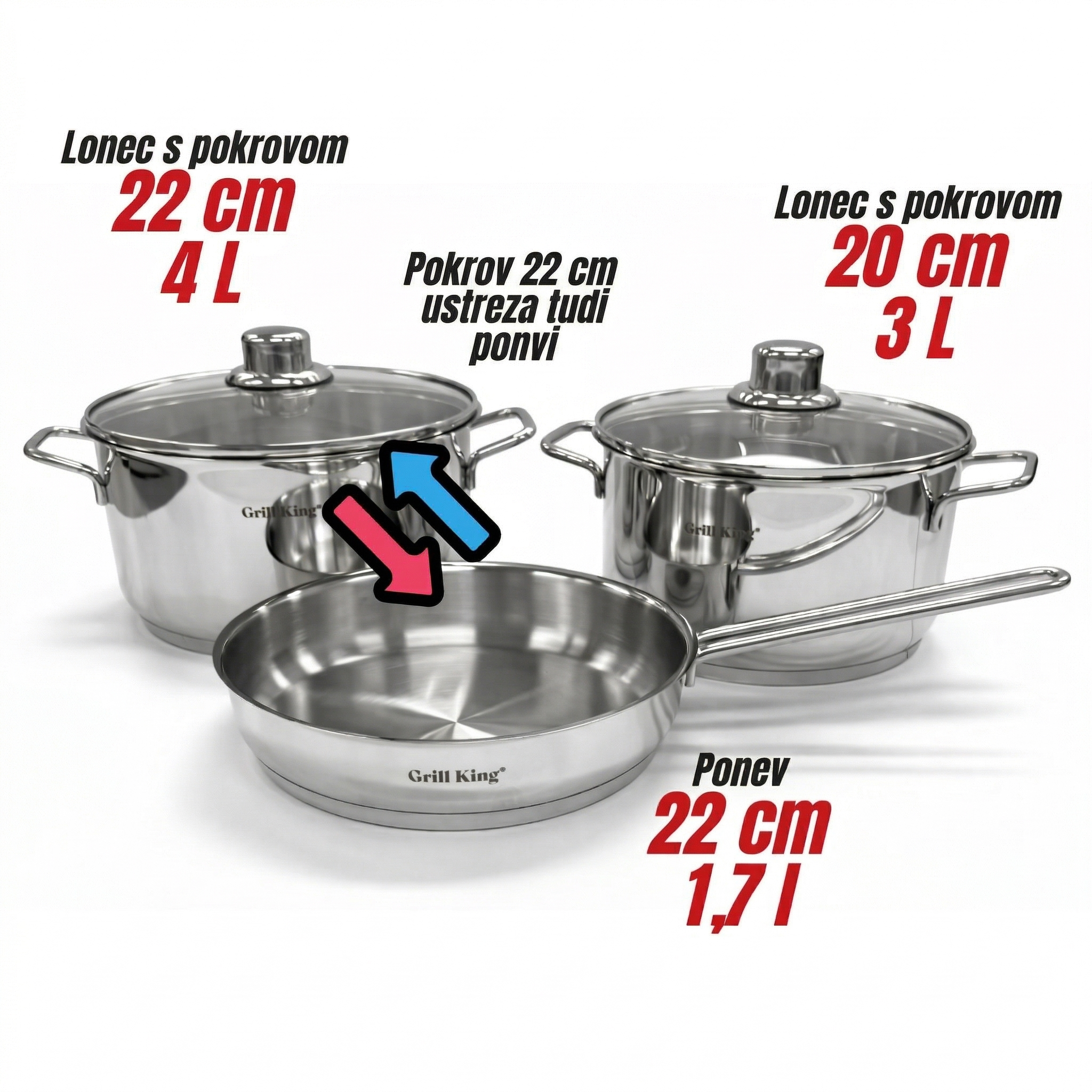 Grill King START 5-delni Set Inox Posode – Popolna izbira za vsak dom
