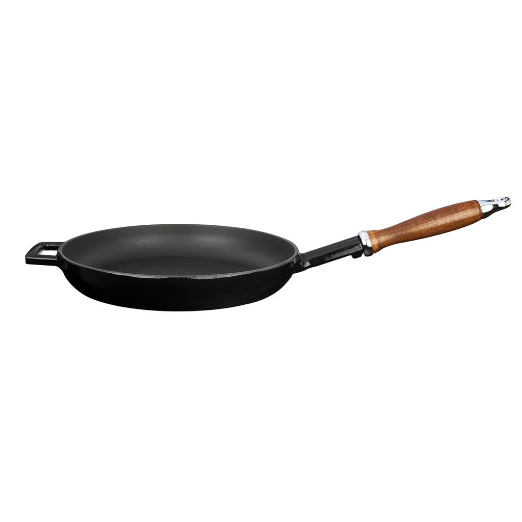 LAVA tava za prženje s drvenom odvojivom ručkom, promjera 24 cm, crne boje. Kapacitet 1,32 litara, za 4 porcije. Visina 10,5 cm.