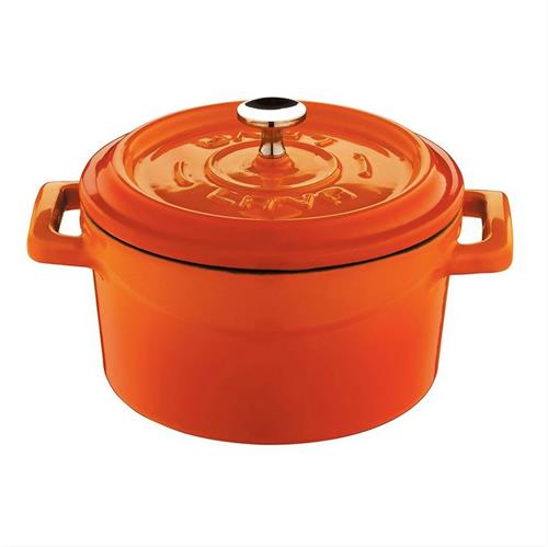 Oranžen mini litoželezni lonec s pokrovom in vgrajenimi ročaji LAVA, 10 cm
