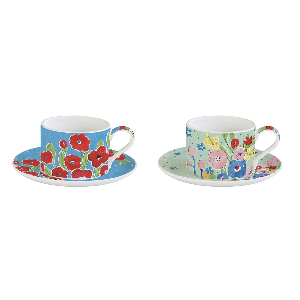 Set je sestavljen iz 2 skodelic za kavo ali čaj in 2 krožničkov.