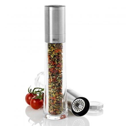 Aroma mlinček modernega dizajna s prozorno posodo vam omogoča, da takoj vidite, kaj je notri. Mlinček je idealen za mletje posušenih zelišč in začimb. Primerno za mletje kumine, koriandra, sezama in drugih. Rezervoar je izdelan iz akrila, ohišje pa iz nerjavečega jekla. Višina: 24,5 cm, premer: 5 cm.