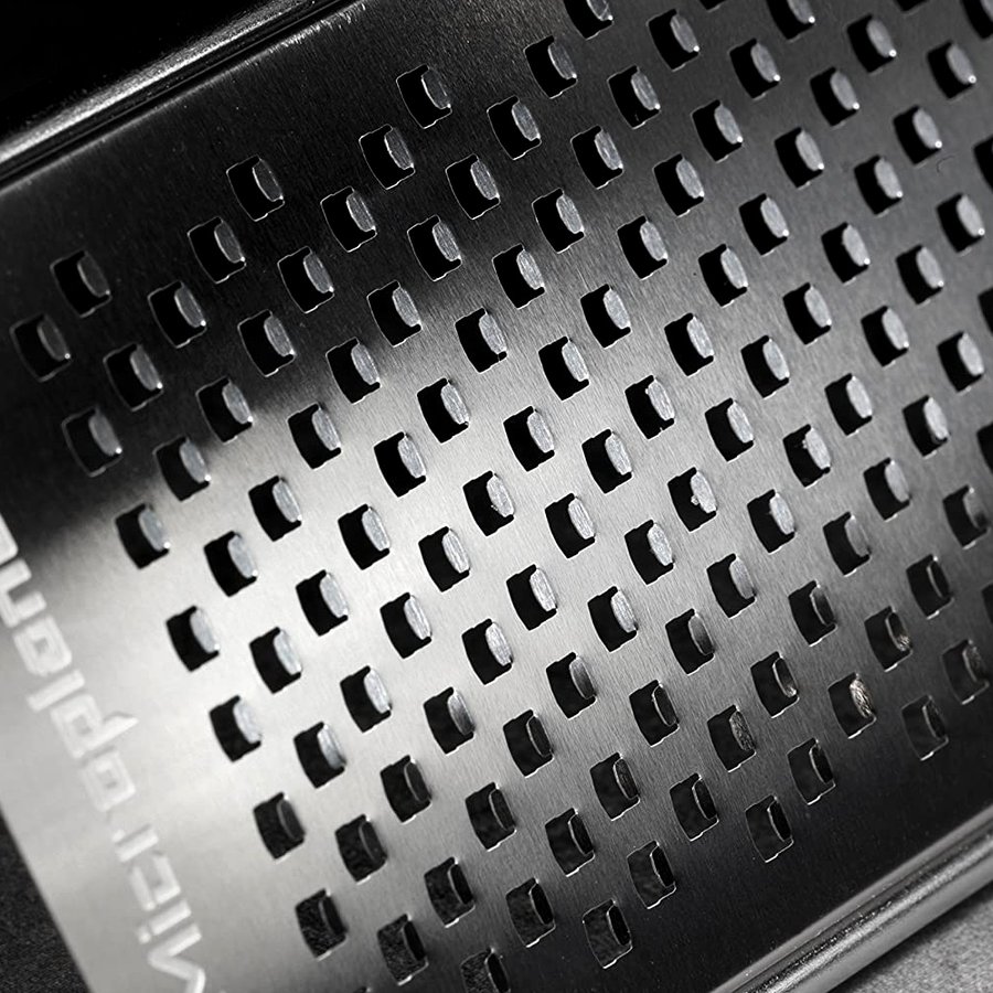Ročna strgala in rezila Microplane premium so izdelana iz neprebojnega vrhunskega nerjavečega jekla, ki bo zdržalo več let dela (oznake 18/8). Profesionalna serija strgalnikov Microplane bo vaši kuhinji dodala izjemno eleganco. Konstrukcija iz nerjavečega jekla z udobno ukrivljenimi ročaji in nedrsečo gumijasto prevleko je videti fantastično. Vsebuje zaščitno prevleko. Enostaven za vzdrževanje s pranjem pod tekočo vodo ali v pralnem stroju.