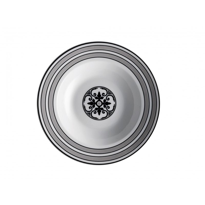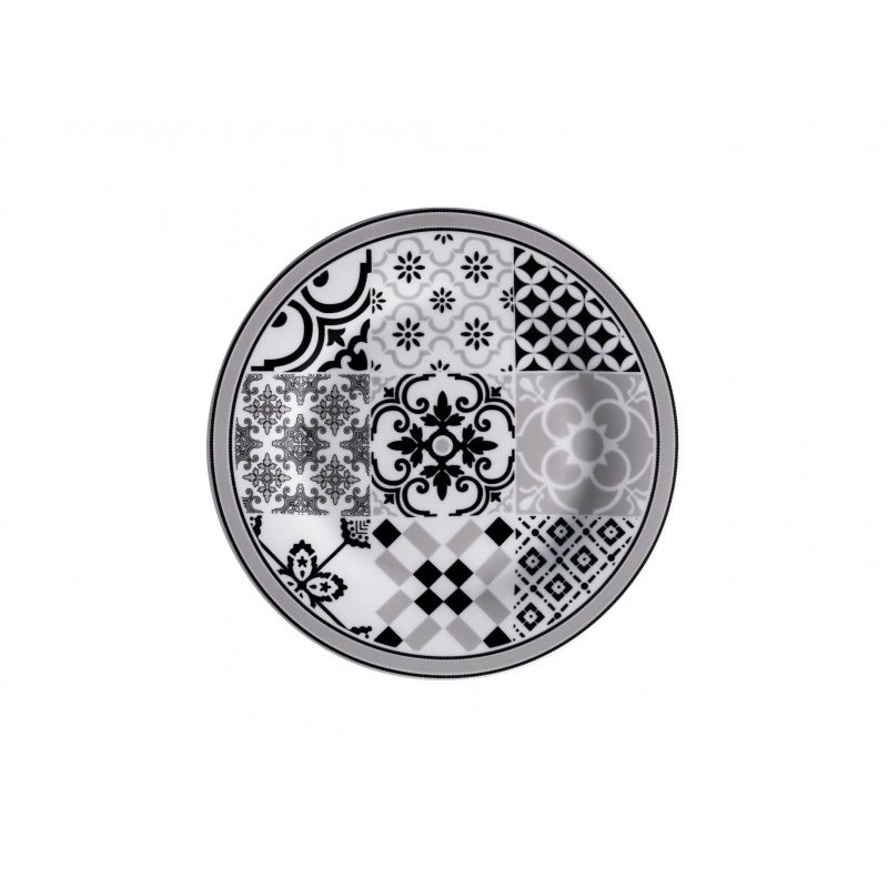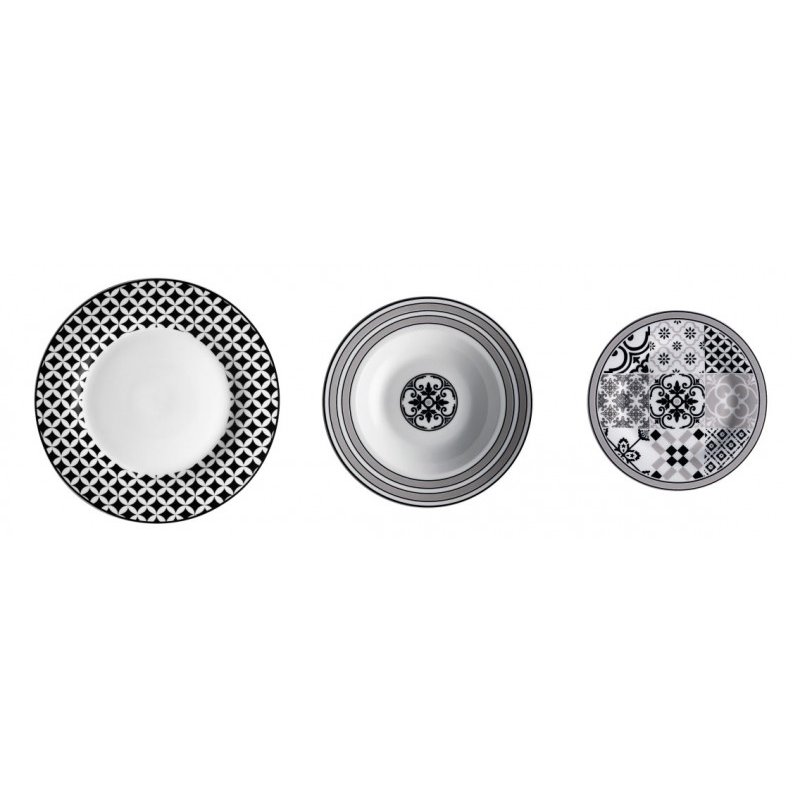 Mehke barve in očarljivi okraski elegantno in privlačno zapolnijo komplet teh porcelanastih krožnikov. Lahko mešate barve, oblike in sloge, da ustvarite svoje, edinstveno in lepo umetniško delo. Set vsebuje; 6 x plitvi krožnik 26,5 cm; 6 x globoki krožnik 22 cm; 6 x desertni krožnik 19 cm; Primerno za pranje v pomivalnem stroju; Primerno za mikrovalovno pečico; Primerno za zamrzovalnik