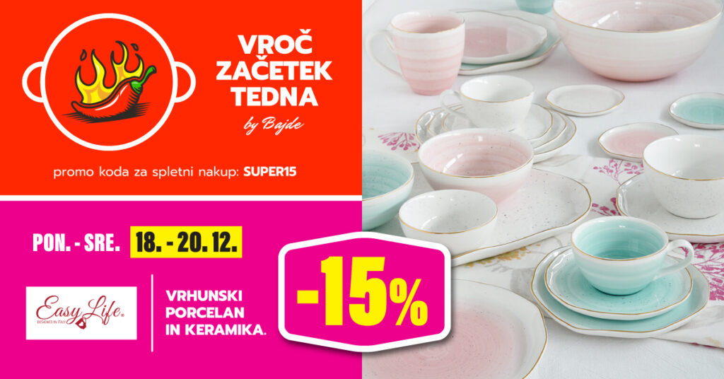 Vroč začetek tedna je naša nova ponudba za vse ljubitelje trgovin s kuhinjskimi pripomočki! Pozor, vsak ponedeljek si oglejte ponudbo in začnite teden s prihranki!