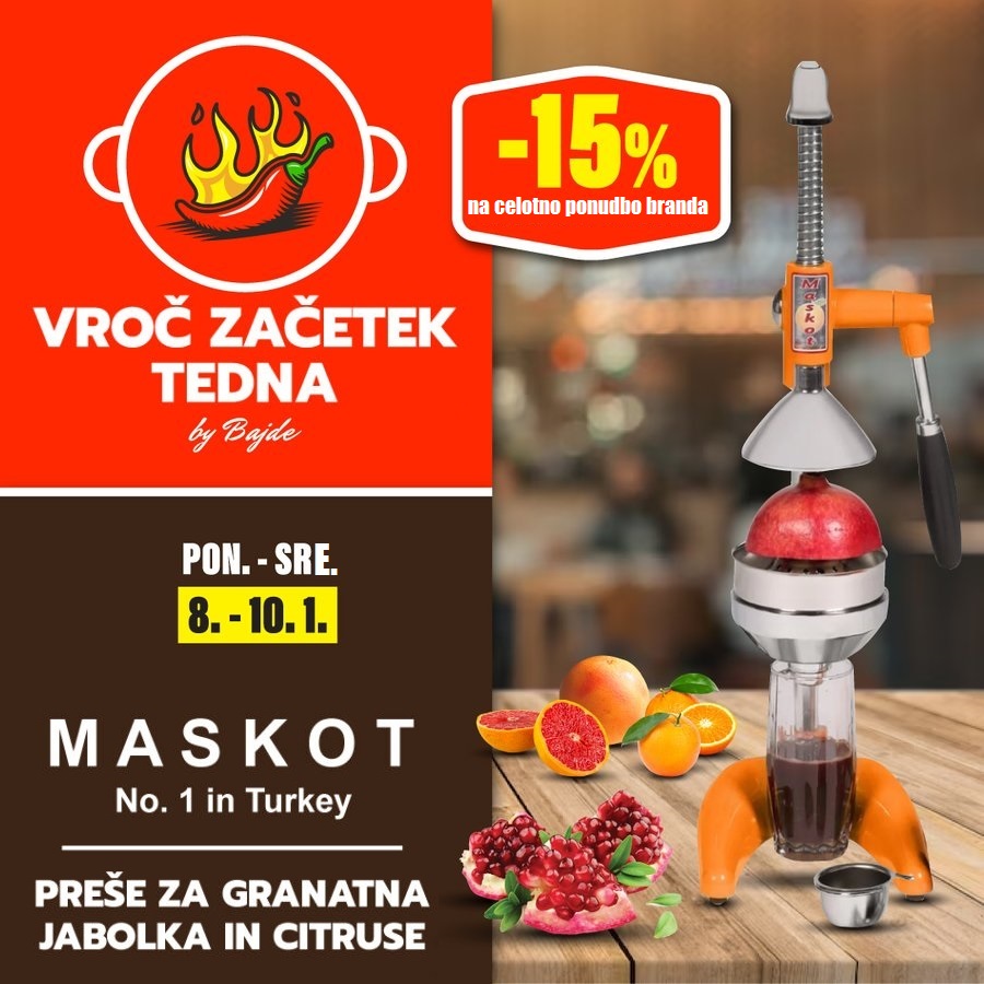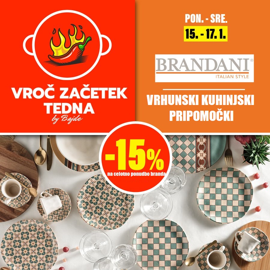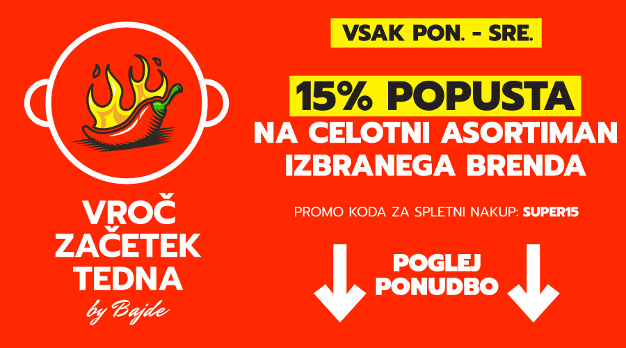 Vsak ponedeljektorek in sredo vas v vseh naših maloprodajnih trgovinah in na spletni trgovini čaka odlična poslastica – izdelke iz celotne ponudbe izbrane blagovne znamke lahko kupite s privlačnim 15% popustom.